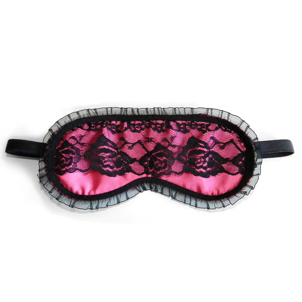 Antifaz ciego color rosa, con detalles en encaje negro.