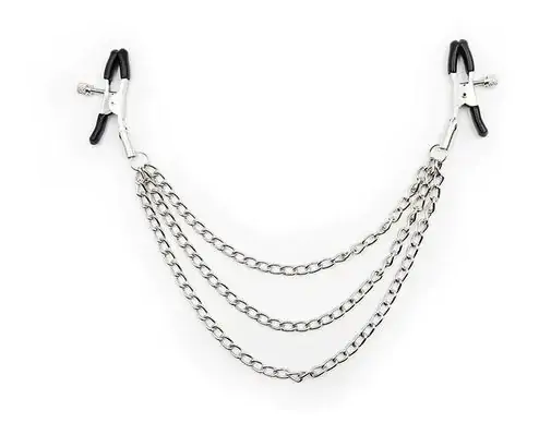 Sujete las abrazaderas de pezon totalmente ajustables y disfrute de una fantasía orgasmica inolvidable. Las mini abrazaderas se unen entre sí a través de una resistente cadena triple de alta calidad que aumenta la sensibilidad intima y la satisfaccion sensual.